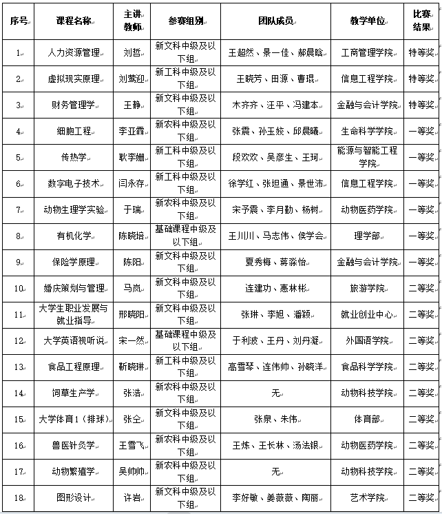 根据学校《关于举办2025年度教师教学创新大赛的通知》(〔2025〕28号)和《2025年度教师教学创新大赛校赛工作方案》具体安排,经教学单位初赛选拔、学校组织专家开展网络评审和现场汇报评审、学校教学创新大赛工作小组研究,共评出特等奖5个、一等奖10个、二等奖14个。现将2025年度教师教学创新大赛结果公示如下。