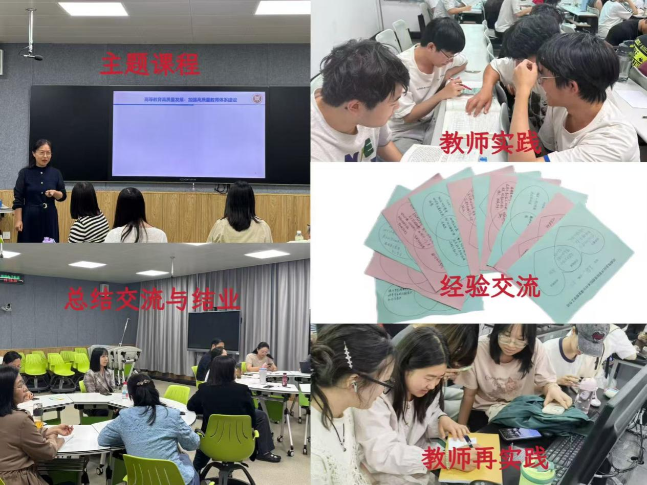 本次工作坊分为五个阶段进行,第一阶段为主题课程集中学习阶段,由“主题讲座+实操训练+集中答疑”三个板块构成,让老师们在多轮次的精讲、独学、讨论、对话中感受对分四元结构环环相扣的奥妙,体验到“对分课堂”的神奇魅力。第二阶段为教师进行课堂教学实践。第三阶段为交流答疑,指导教师针对教师在对分课堂实践中遇到的问题进行集中答疑与针对性指导,并组织经验交流,进一步提升教师应用对分课堂的教学技能。第四阶段为教师再实践阶段,教师在完善改进的基础上,继续在课堂上实践对分课堂教学模式。第五阶段为总结交流与结业,每位学员分享实践经验、培训收获,共同交流解决仍存在的困惑,并思考未来的行动。教师发展中心为完成培训任务的教师颁发结业证书。